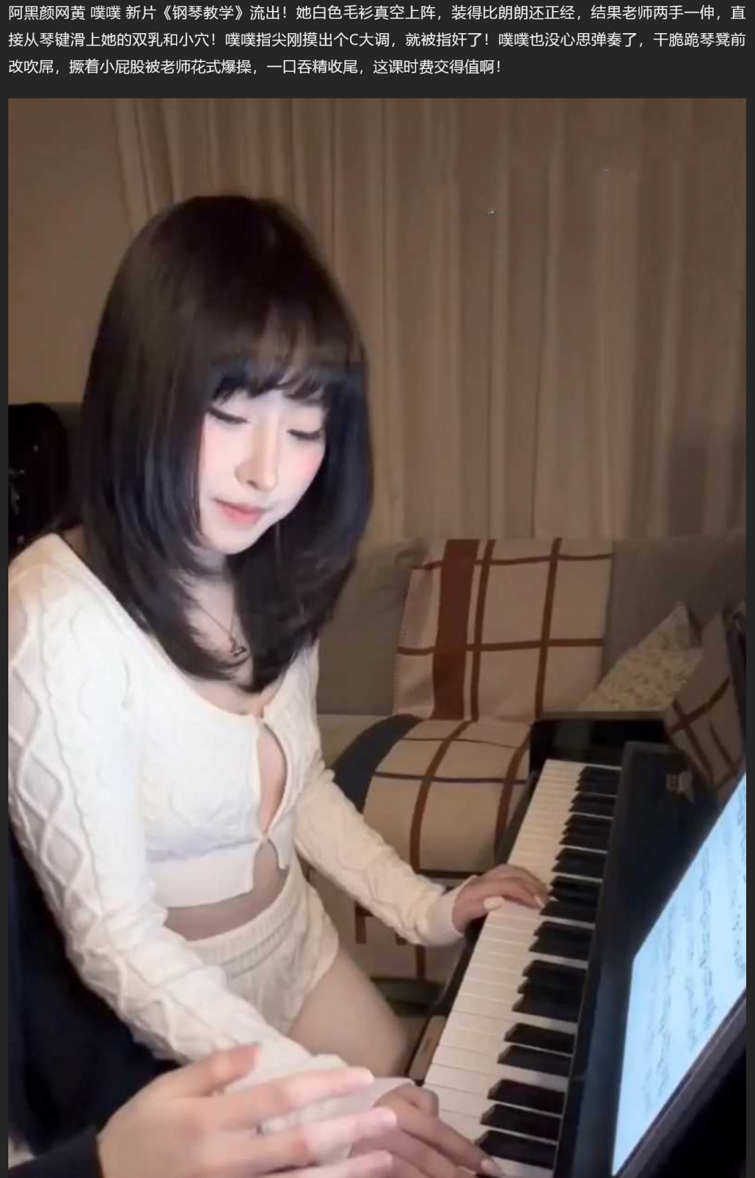 【影片名称】:阿黑颜网黄 噗噗 新作钢琴教学 真空弹琴老师边教边玩穴 弃琴跪舔被后入爆操 最后口爆吞精!